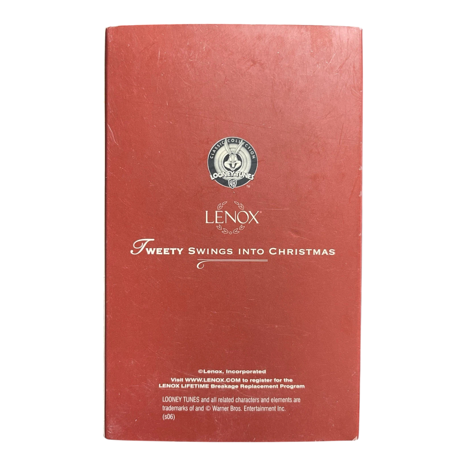 This delightful porcelain ornament features the beloved character Tweety Bird from the Looney Tunes franchise perched on a festive swing, mid-air as if joyfully “swinging into Christmas.” The figure is finely crafted in ivory-white porcelain, accented with 24-karat gold detailing, capturing Tweety’s bright eyes and cheerful pose with holiday flair. The package (in many listings) includes the original box and a certificate of authenticity, though some may be missing one or the other. No batteries, cords, lights, or motion components are required — it’s a static decorative piece meant to hang on your tree or in a display.